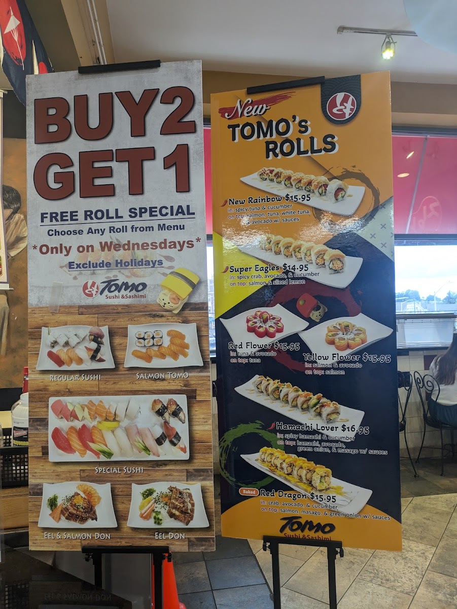 3 pieces tuna sushi, 3 pieces salmon sushi, and 6 pieces salmon roll. Includes miso soup.