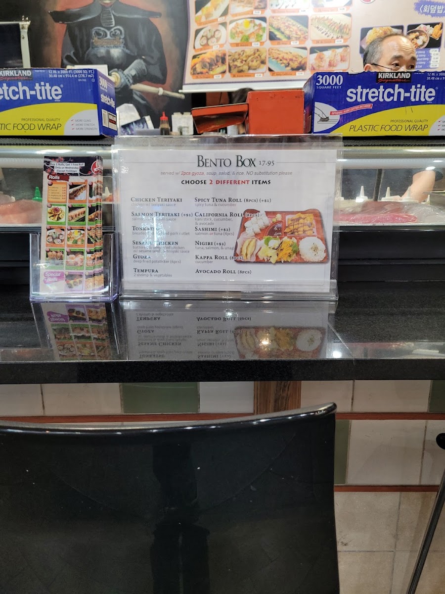 in: spicy tuna & cucumber top: salmon, tuna, avocado, & white tuna